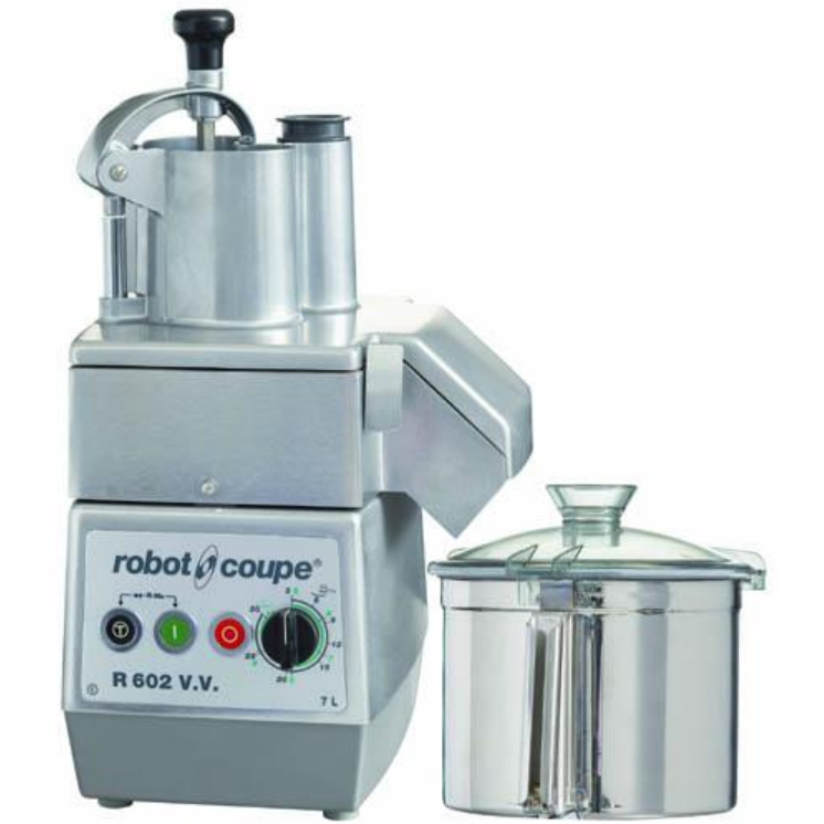 However, Robot Coupe’s R602VV Combination Food Processor solves both these problems! By using the continuous feed head and a 7 quart stainless steel batch bowl, you will be able to complete preparation work in a fraction of the time than manual preparing.