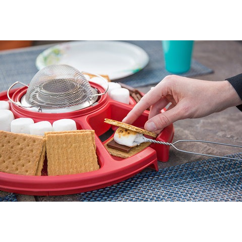 1 durable and easy to clean serving tray with 2 integrated S’Mores Making Stations
